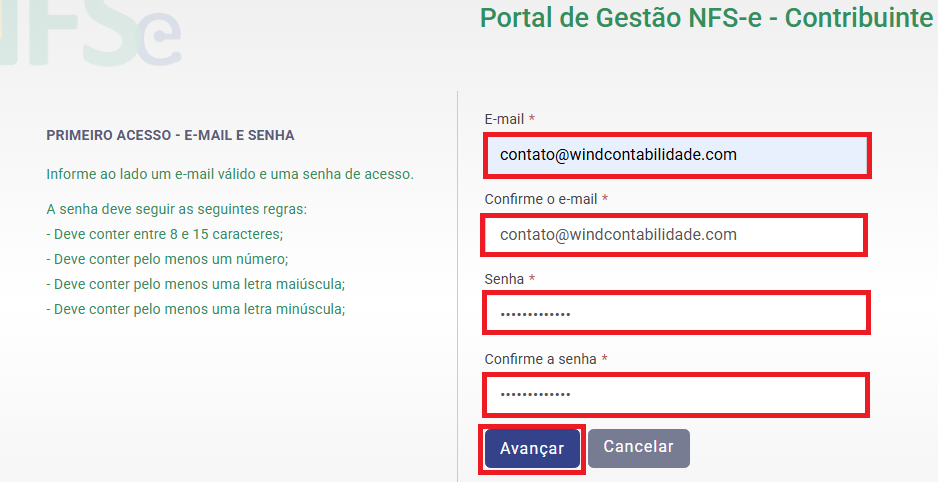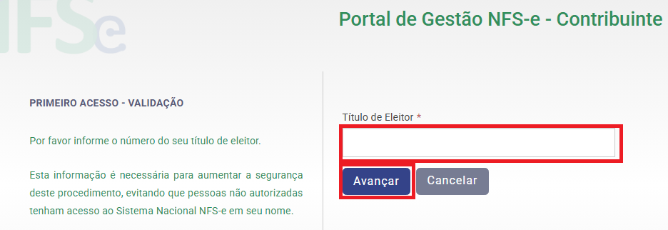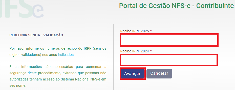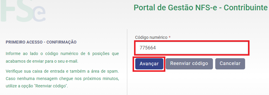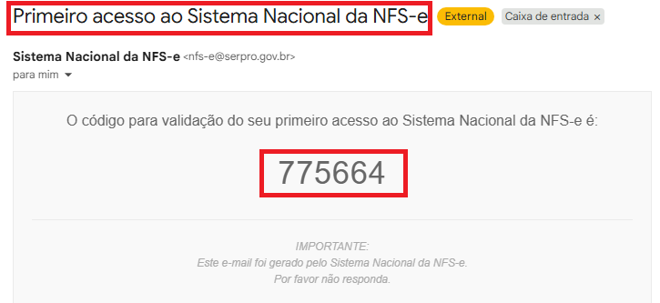Você receberá um código no e-mail cadastrado no seu registro do NFSe Nacional