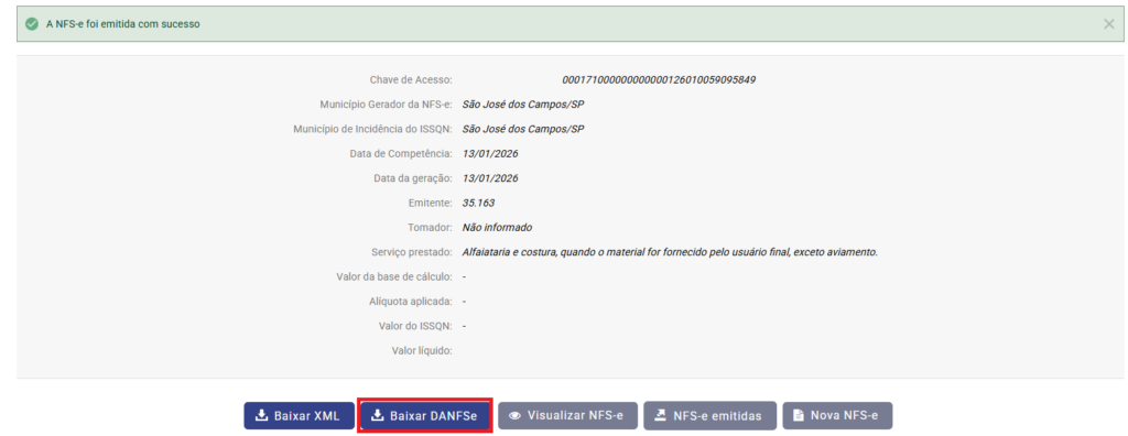 OBS: O Ideal é sempre preencher os dados do tomador do serviço, entretanto, a Receita Federal permite a emissão de notas fiscais para “TOMADOR(CLIENTE) NÃO INFORMADO”, ou seja, caso você não preencha os dados do tomador, a nota será emitida com está informação.