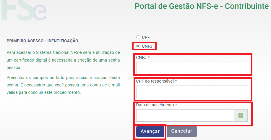 1. Informe seu CNPJ, CPF e Data de Nascimento.