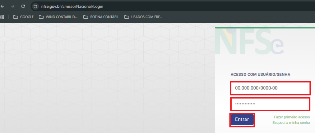 Para acessar o sistema, você precisa de uma conta Gov.br (nível Prata ou Ouro) ou criar uma senha diretamente no Portal da Nota Fiscal de Serviço Eletrônica.