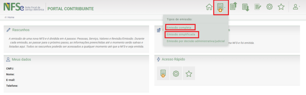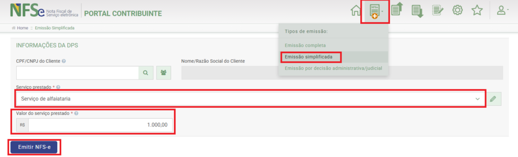• Emissão Simplificada: Ideal para quem precisa de agilidade. Você só precisa informar o CPF/CNPJ do cliente e o valor do serviço.